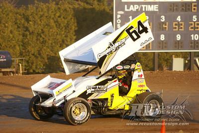 Scott Thiel Motorsports and Scotty Thiel kicked off the 2011 race season finally Friday night at the Manitowoc County Speedway in Manitowoc, WI. The crew unloaded the brand new #64 Complete Water Triple X Chassis and prepared for the nights' event. Scott drew a 45 pill, which set him to start 8th in his heat race. With a fairly tacky track, passing was very difficult along with visibility. Thiel managed a sixth place finish, but would have to come through the B-Main in order to make into the 30 Lap A-Main. Scotty started on the pole position of the B, and never looked back, winning by a large margin. With that finish, it would allow Scotty to start 17th in the A-Main event. After a few attempts, the race eventually got under way. Scotty began to pick of several cars and drove a steady race. After 30 laps were complete, Thiel managed to take a solid 10th place finish. " The car worked pretty good, can't complain about 10th for the first night out" Thiel stated.